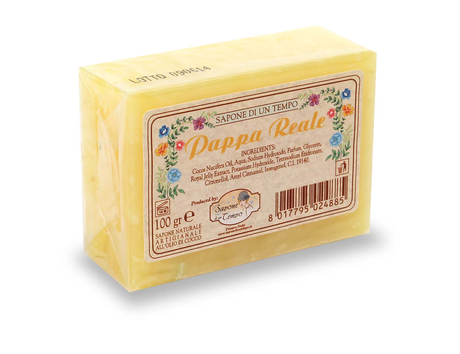 Il sapone alla Pappa Reale, come tutta la nostra linea di saponi, viene prodotto artigianalmente secondo il metodo tradizionale della saponificazione a freddo. Partendo da Olio di Cocco puro otteniamo, dopo stagionatura naturale, il sapone, che arricchito con eccipienti versatili deterge la pelle in profondità.